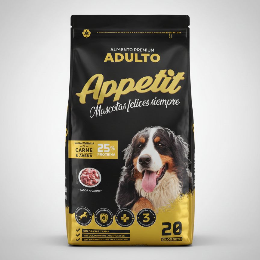 Appetit es un alimento de mantención premium diseñado para brindar una nutrición completa, equilibrada y altamente palatable para tu mascota. Su fórmula combina proteínas de calidad con vitaminas y minerales esenciales que promueven una vida activa, un sistema inmunológico fortalecido y un pelaje visiblemente más sano, convirtiéndose en la opción ideal para quienes buscan el equilibrio perfecto entre rendimiento nutricional y economía en el hogar.
